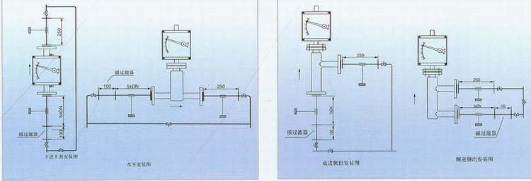浮子流量計應(yīng)垂直安裝,流量計中心線與鉛垂線的夾角不超過5°。在累計的上游須保證五倍公稱通徑的入口直管段,下游保證