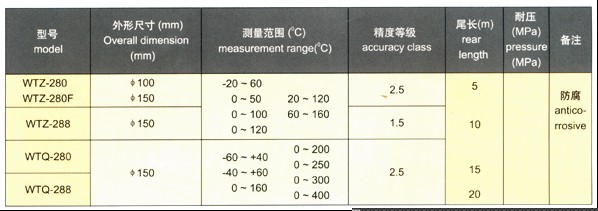 WTZ/WTQ-280/288系列壓力式溫度計該型號壓力式溫度計適用于過程中較遠距離的非腐蝕性液體或氣體的測量,電接點型壓力式溫度計能在工作溫度達到和超過給定值時發出電訊號。
