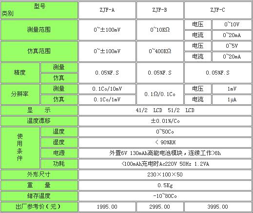 AK-ZJF系列校驗仿真儀技術指標