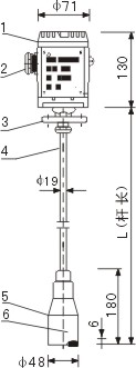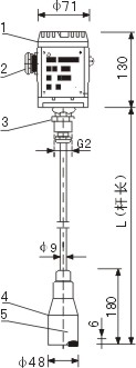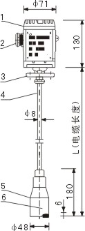 投入式 液位變送器 結構類型 AK-LC纜式液位變送器 AK-LR桿式液位變送器 AK-LD直裝式液位變送器 AK-LC 外形尺寸 AK-LC纜式液位變送器 (普通形式連接) 1、變送器外殼 2、信號線纜接頭 3、傳感器電