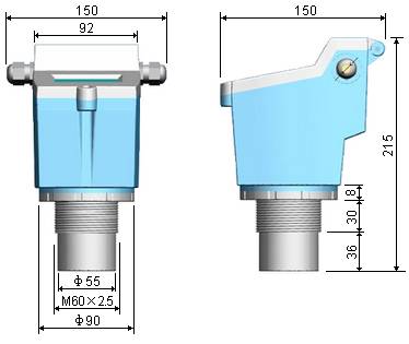 三、外型安裝尺寸(探頭尺寸會根據(jù)換能器量程的不同而有所改變,若有不同會預先告知)