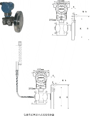 AK-3051LT液位變送器是一種直接安裝在管道或容器上的現場變送器。由于隔離膜片直接與液體介質相接觸,無須將正壓側用導壓管引出,因此可以測量高溫、高粘度、易結晶、易沉淀和強腐蝕等介質的液位、壓力和密度,然后將其轉換成4~20mA.DC信號輸出。 Lt型液位變送器采用標準的法蘭進行安裝聯接。